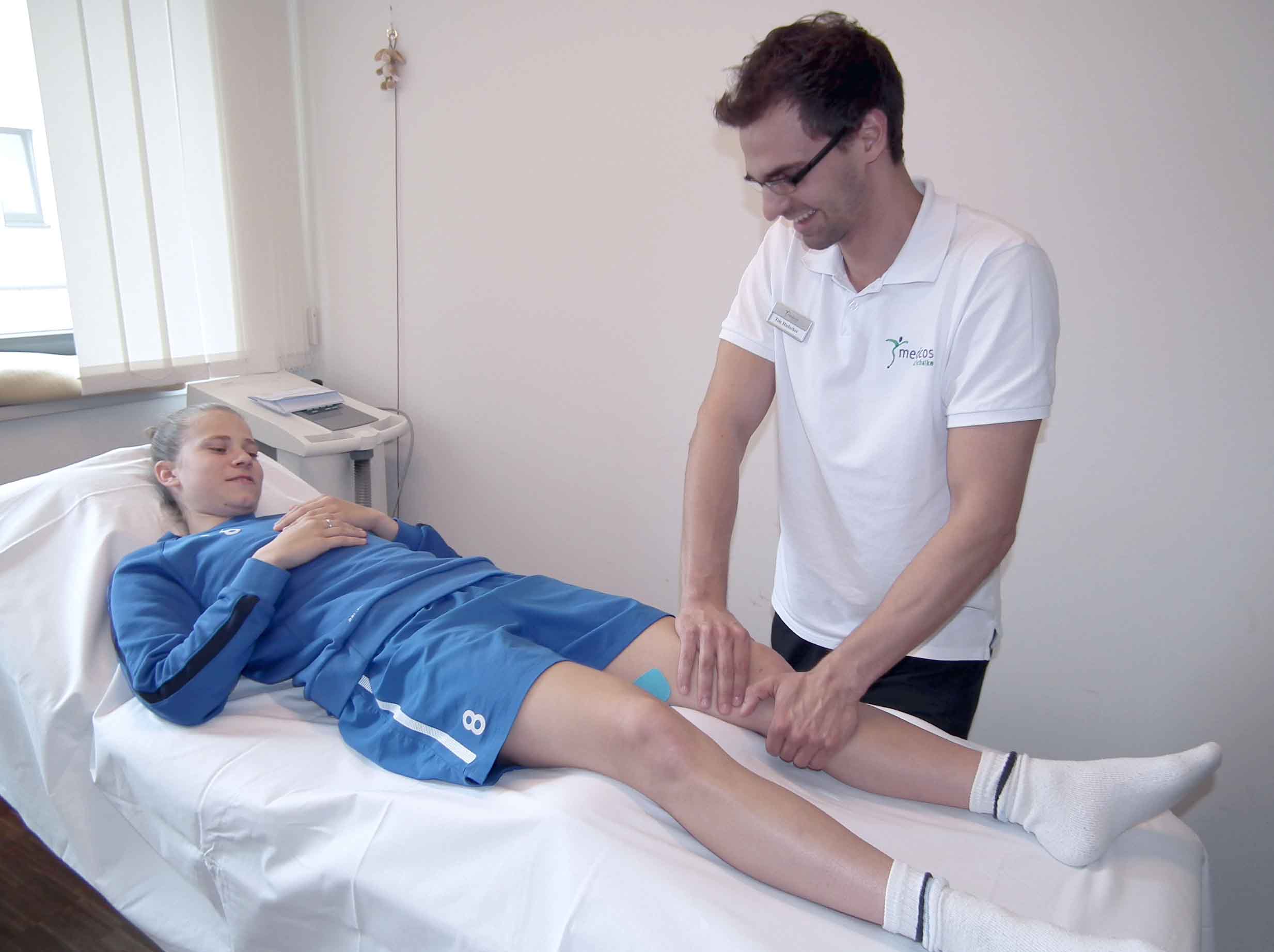 [...] Seit Anfang Juni kommt die Fußballerin täglich zu Sibylle Streicher, Physiotherapeutin und Tim Hielscher, Physiotherapeut und Sportwissenschaftler im medicos.AufSchalke, zur Behandlung. Derzeit stehen neben der manuellen Therapie das sportartspezifische Kraftausdauertraining und die Stabilisierung der Rumpfmuskulatur auf dem Programm. Wöchentlich wird auf dem Unterwasserlaufband im medicos.Bewegungsbad trainiert. Sobald es die physischen Strukturen zulassen wird die Therapie durch ein koordinatives Training mit Sportartbezug ergänzt.